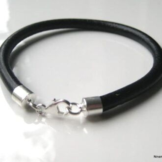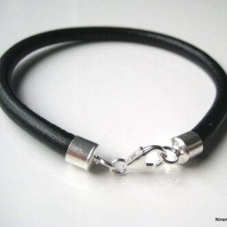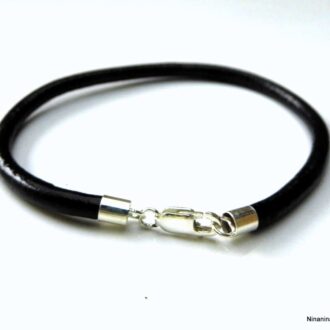 Bracelet cordon cuir Argent 925 massif double tour composé d’un double cordon de cuir noir monté sur un fermoir mousqueton en argent 925.