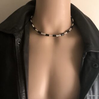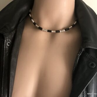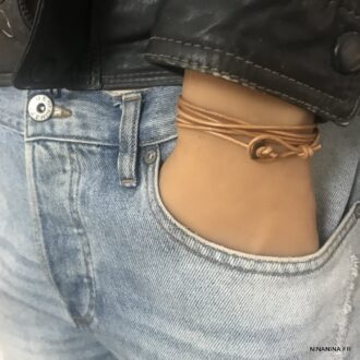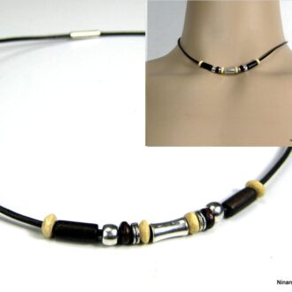 Existe avec un cordon noir, marron chocolat, gris, turquoise, rose foncé, rouge et naturel.
