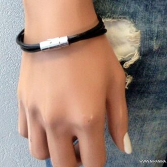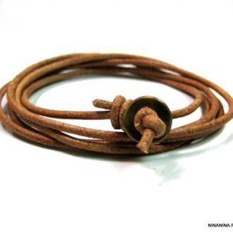 Bracelet homme cordon cuir et acier inoxydable composé de 4 cordons en cuir marron chocolat montés sur un fermoir cylindrique en acier inoxydable .