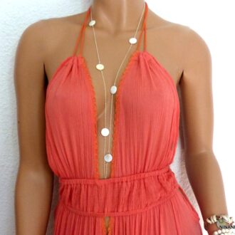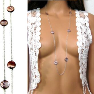Collier long – Sautoir Argent 925 massif Et Nacre