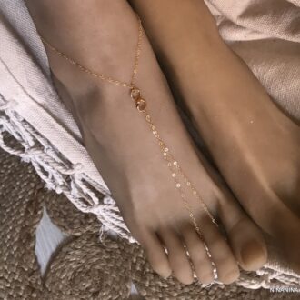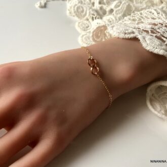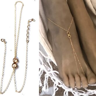 Chaine de cheville signe infini Plaqué Or composée d’un pendentif infini en argent 925 plaqué or 24 carats monté sur une chainette en plaqué or 18 carats.