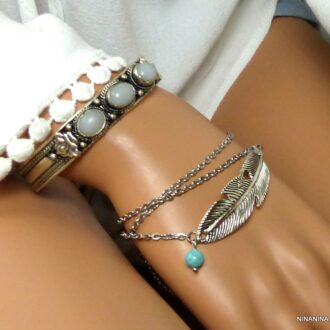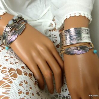 Le bracelet manchette se porte avec tout. Pour bien le mettre en valeur ne le portez pas au même poignet que votre montre habituelle. Serrez le suffisamment pour qu’il soit maintenu mais laisser le un peu lâche pour qu’il ne soit pas trop serré.