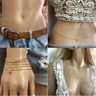 Vous souhaitez modifier ou ajouter une pièce? modifier la couleur ou la matière ? Cette chaine de taille est faite sur mesure et comme la majorité des bijoux Ninanina, est personnalisable. Vous pouvez demander à modifier certaines caractéristiques de ce bijou de corps. Il est possible d’opter pour une autre longueur que celles proposées dans le menu déroulant. De la même façon, vous pouvez nous demander de créer d’autres bijoux assortis à cette chaine de taille : bague, collier, bracelet, chaine de cheville, par exemple. Il vous suffit de laisser un commentaire et nous élaborerons ensemble votre nouveau bijou personnalisé.