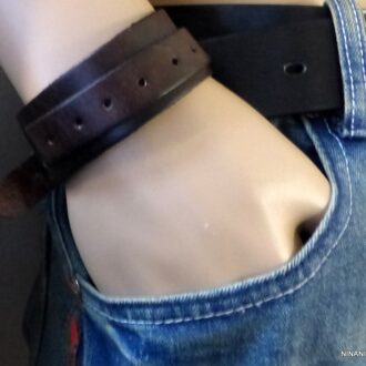 Ce Bracelet Manchette cuir homme est fabriqué à la main, de façon artisanale, en série limitée. Cette pièce faite sur mesure convient pour la majorité des poignets, la fermeture est ajustable et la longueur est réglable sur 4 positions de 19,5 à 23,5 cm.