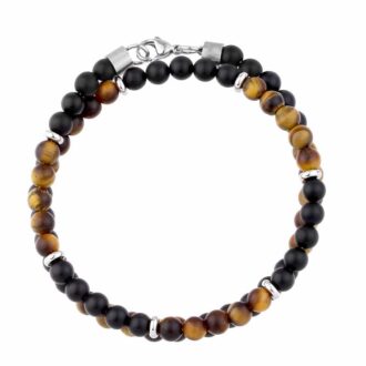 Découvrez ce splendide Collier Oeil du tigre homme Acier inoxydable 42 cm ! Il est composé de pierres en Oeil de Tigre et onyx noir de 6mm de diamètre et de rondelles en acier inoxydables et se termine par un fermoir mousqueton en acier inoxydable, sûr et facile d’utilisation. Un collier pour hommes au design aussi sobre et élégant que possible visant à mettre les pierres naturelles sur le devant de la scène.