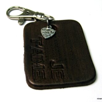 Laissez-vous séduire par les porte clés personnalisés NINANINA gravés sur cuir et fabriqués et teintés à la main par nos soins, en série limitée dans notre atelier du sud de la France!