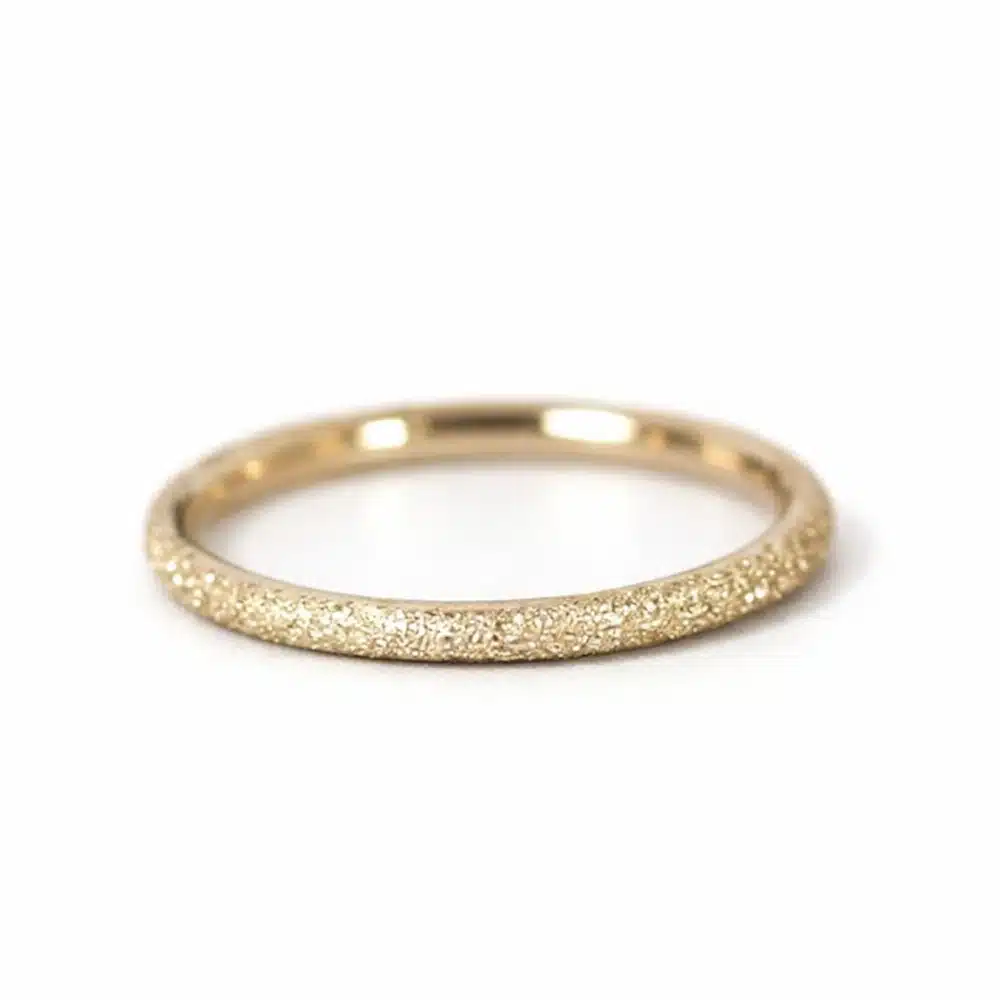 Cet anneau de pouce pour femme en acier inoxydable doré séduit par son design à la fois épuré et contemporain. Sa finition givrée subtilement texturée capte délicatement la lumière et offre un rendu mat satiné très chic, loin des surfaces brillantes classiques.
