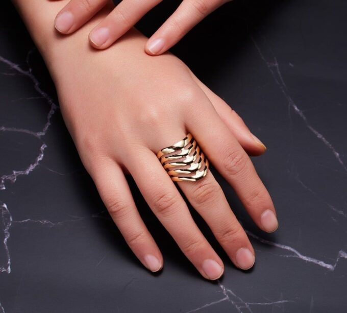 Large, originale et moderne, cette fine Bague en acier inoxydable femme ajustable extra large ne manquera pas son effet! Avec son large motif chevron délicat, cette bague en acier inoxydable argenté à prix mini se montrera sous son meilleur jour, en toutes circonstances et accompagnera avec harmonie toutes vos tenues dans n’importe quelle occasion en offrant à votre main charme et originalité. Largeur : 2,4 cm. Poids : 3 g.