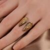 Avec la Bague femme Acier doré ajustable, vous n’avez pas à vous soucier de votre de taille de doigt car elle est réglable! Le grand avantage des bagues ajustables, c’est que vous pouvez changer de main et de doigts selon vos envies et vos goûts sans vous préoccuper du diamètre. Le Diamètre de la bague acier est de 1,8 cm ajustable.