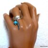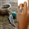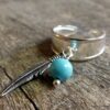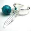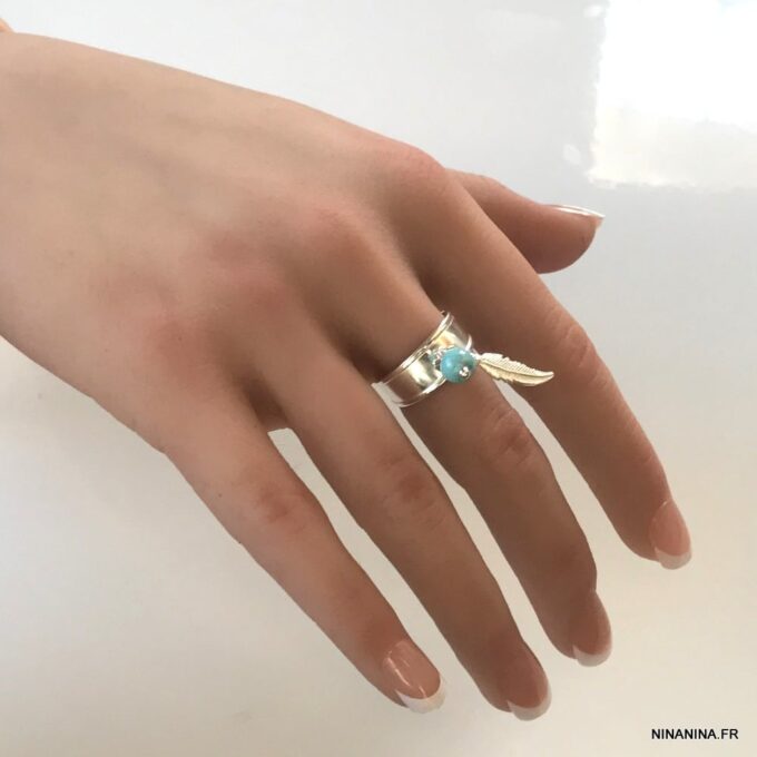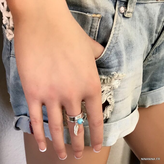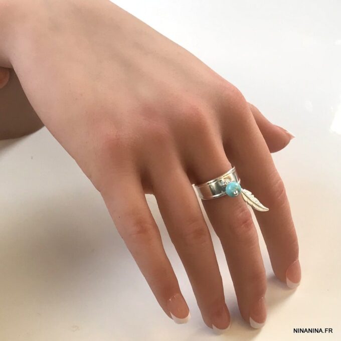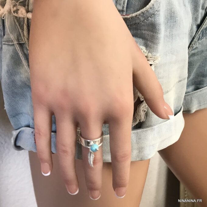 Une bague plume argent femme et sa pierre bleue turquoise à offrir en cadeau