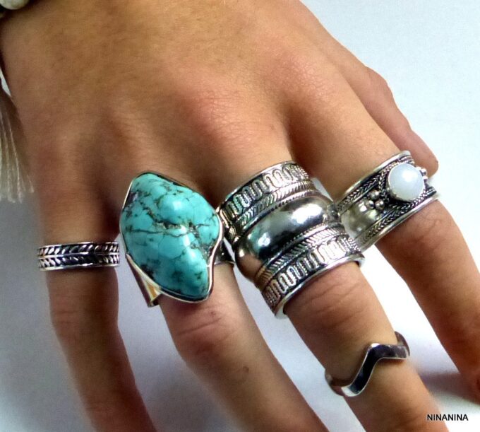 Soyez le premier à laisser votre avis sur “Bague boheme assymétrique bleu turquoise reglable”