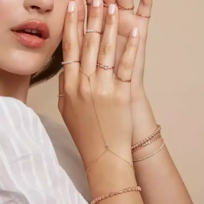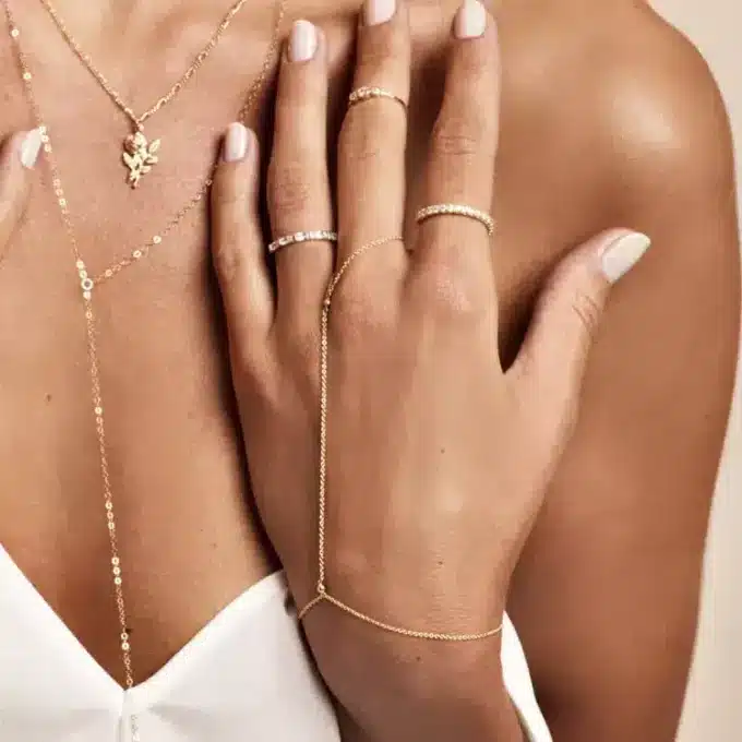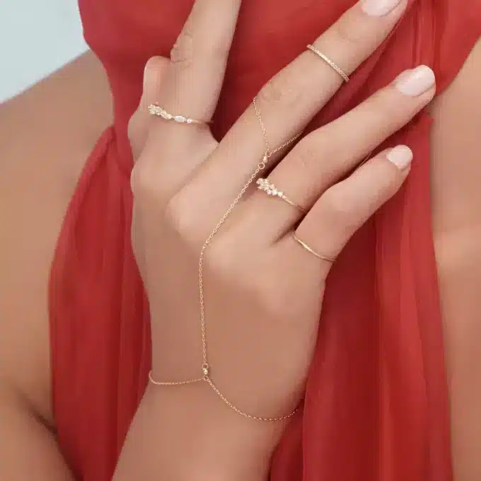 Portée depuis l’Antiquité par les princesses d’Orient, le bracelet-bague aussi appelé : « chaine de main ou parure de main » se veut être un signe de noblesse et de richesse. Elle vient donc orner les mains de la royauté.