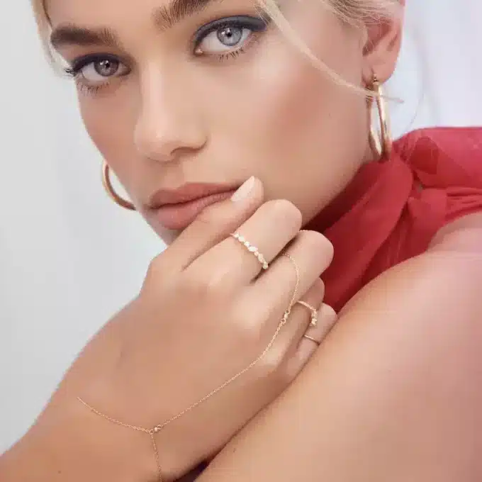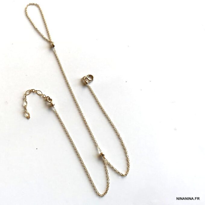 Porté seul, ou accompagné d’autres chaines de main Ninanina, cette splendide chaine de main minimaliste, appelée également Bracelet bague, est un bijou devenu un incontournable de la mode depuis quelques mois !
