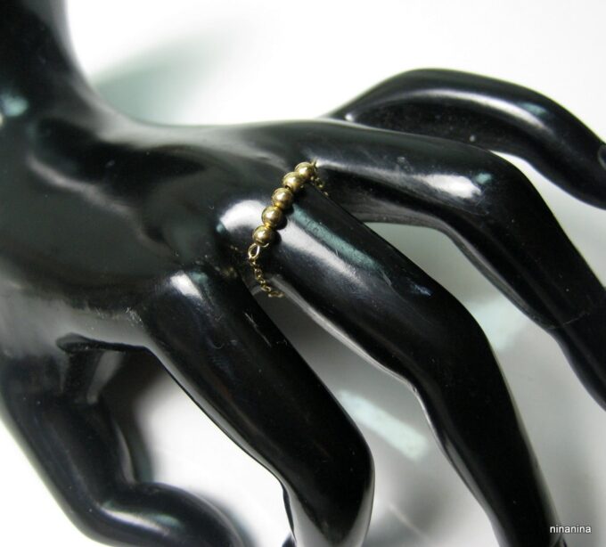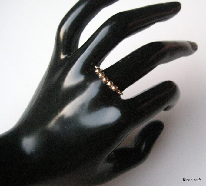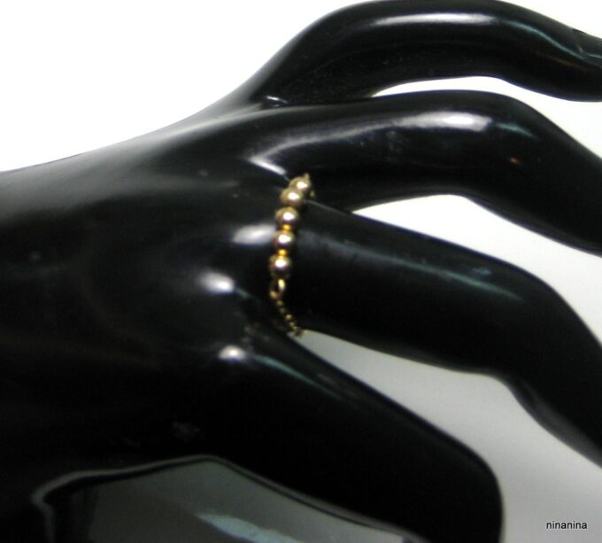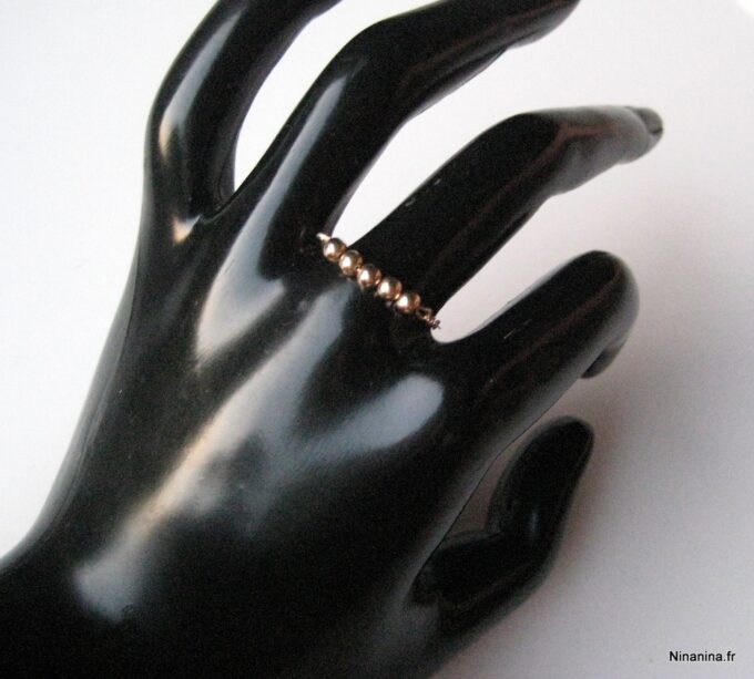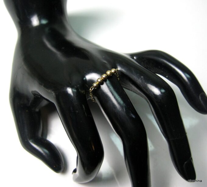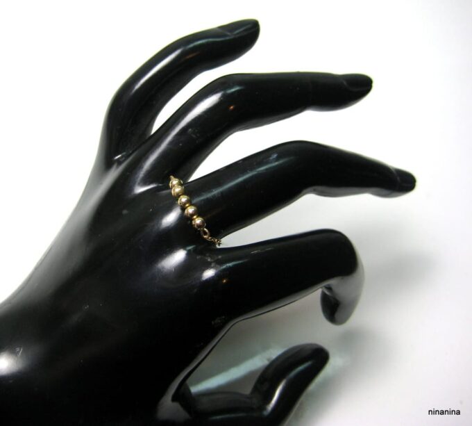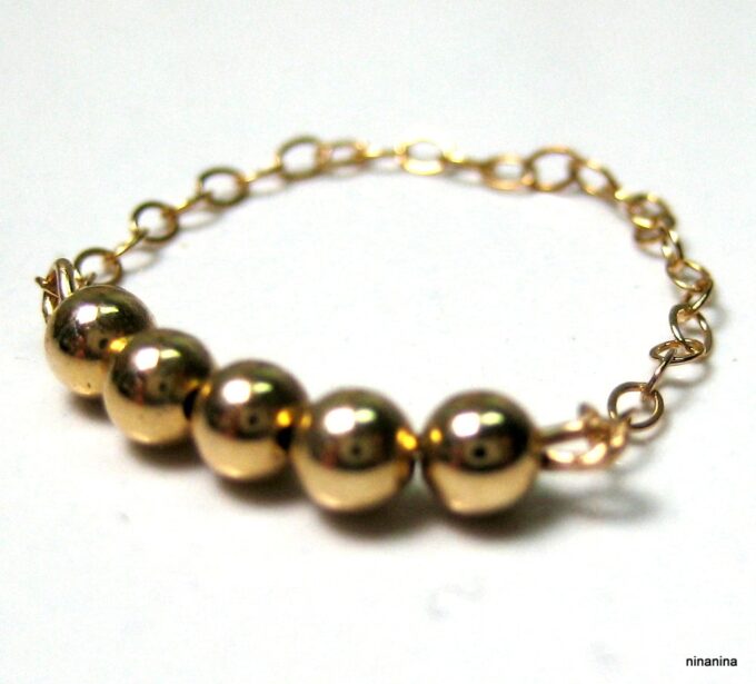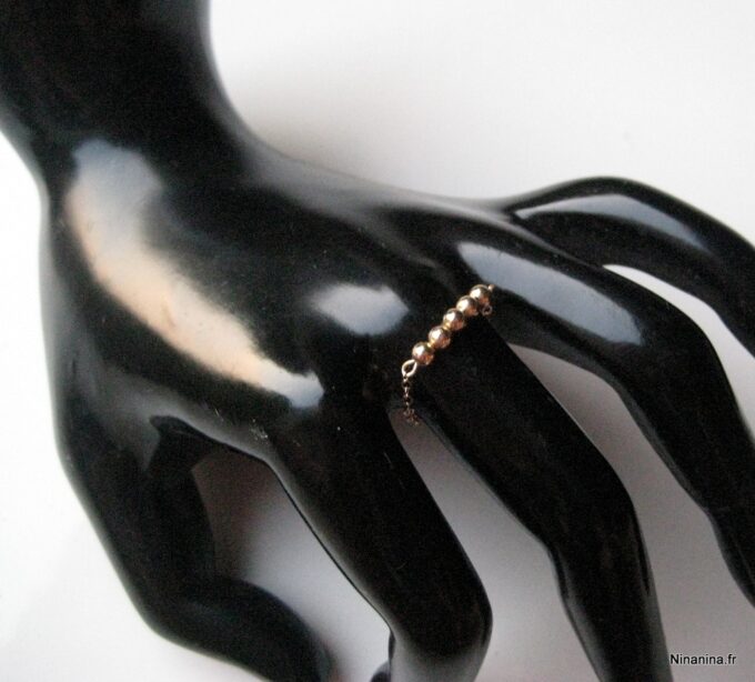 Découvrez sans plus attendre cette Bague chaine perle chainette plaqué or 14 carats composée de 5 perles rondes en plaqué or 14 carats montées sur une fine chaînette en plaqué or 14 carats !