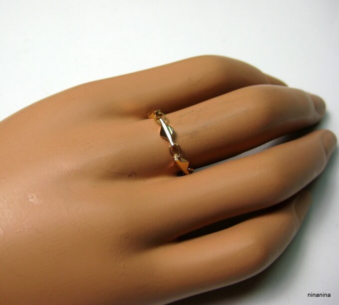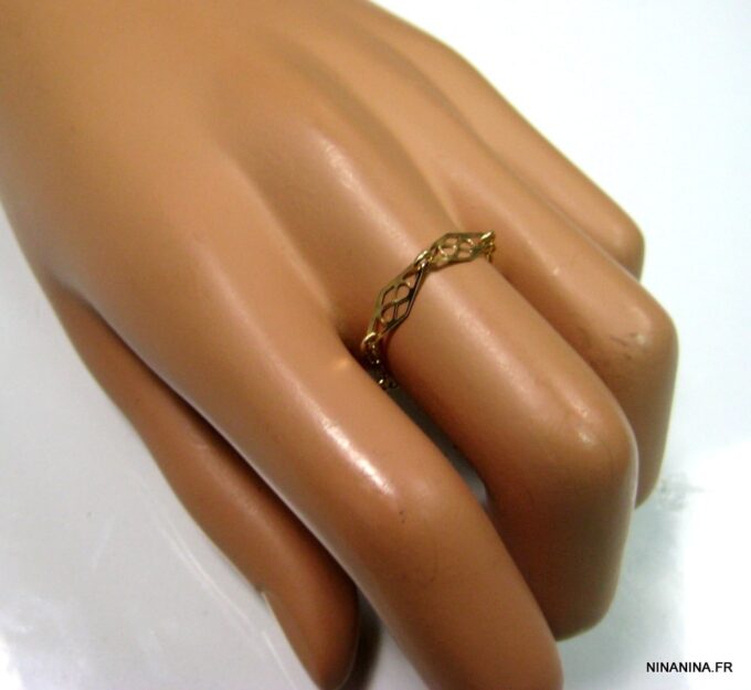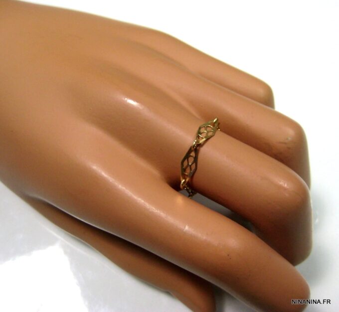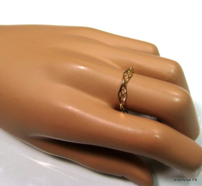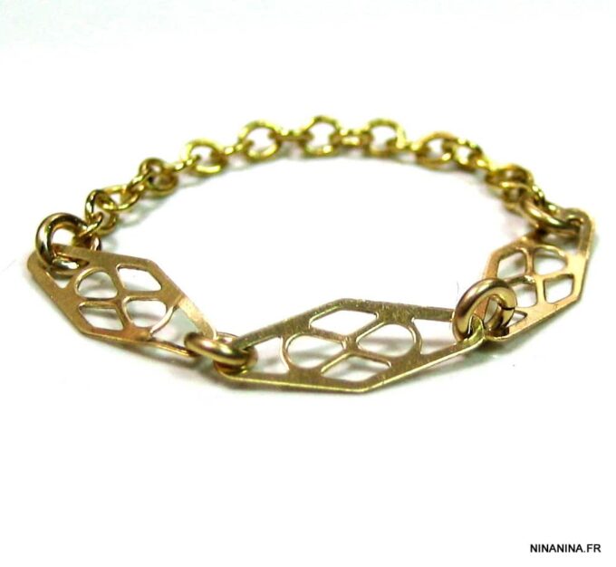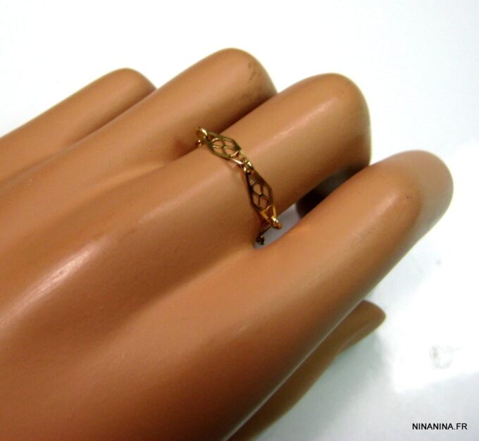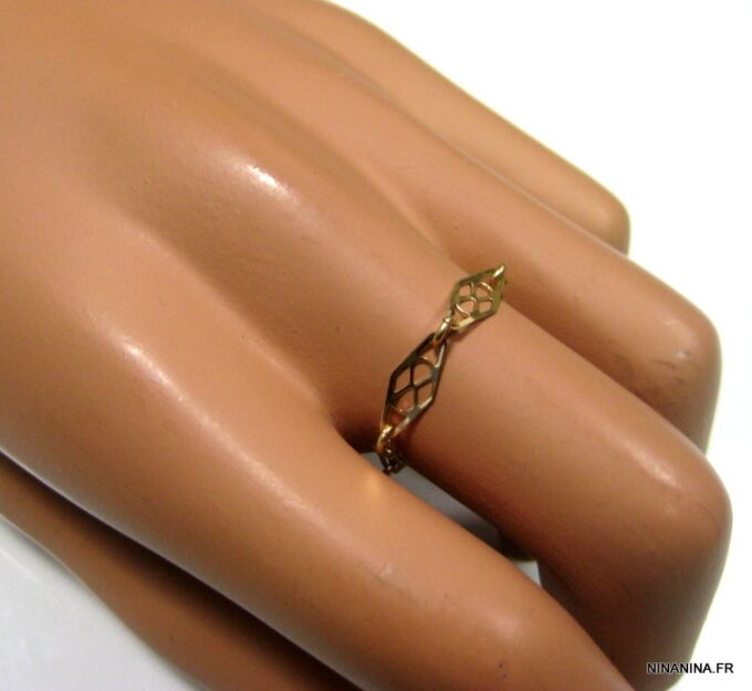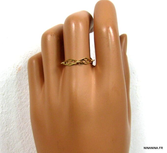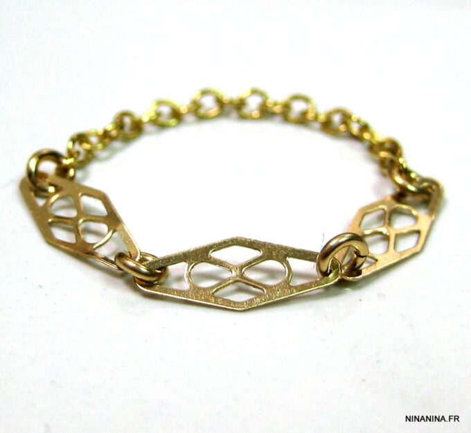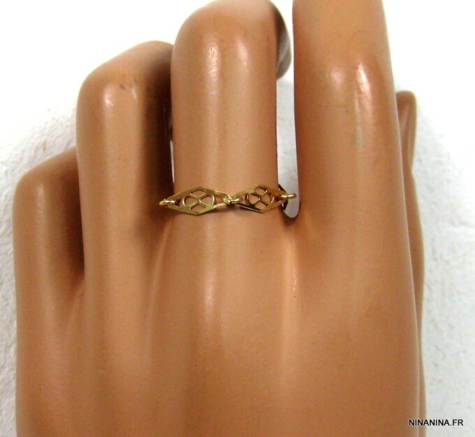 Bague chaine plaqué or 14 carats pour femme composée de 3 motifs ovales en plaqué or 14 carats montées sur une fine chaînette en plaqué or 14 carats.