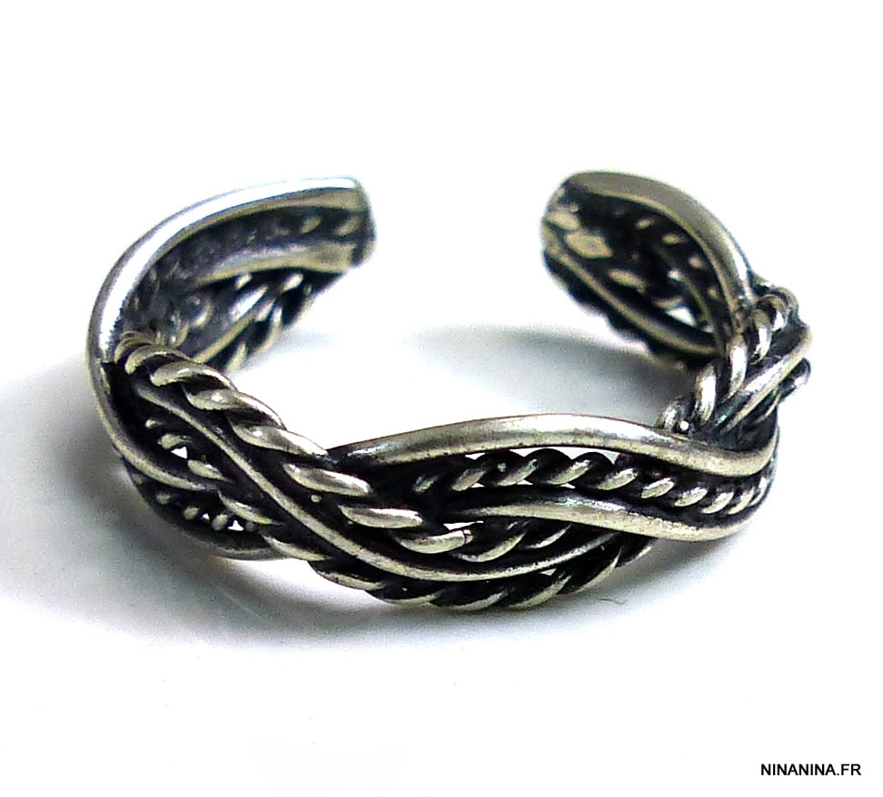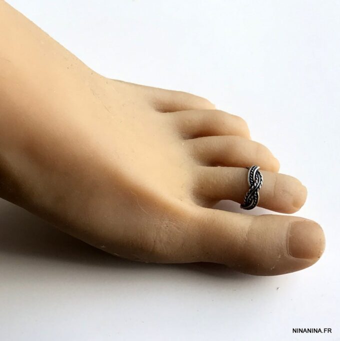 Bague doigt de pied argent 925 massif oxydé tressé.