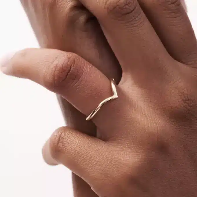 Laissez-vous séduire par la finesse de cette jolie Bague En V Plaqué Or Sur Argent 925 Forme Chevron ! léger et super facile à porter, ce petit anneau féminin en forme de chevron saura révéler votre main toute entière.