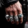 Craquez pour cette splendide Bague homme pierre verte Acier inoxydable noir et son motif skull sur chacun de ses côtés ! Cette bague prendra tout son sens portée aux doigts d’un homme robuste et sur de lui, désireux de se forger un style rock unique!