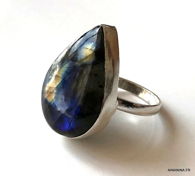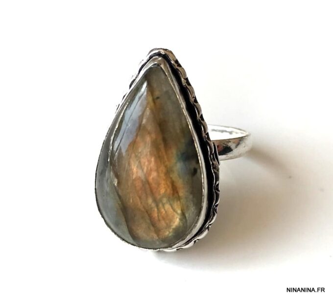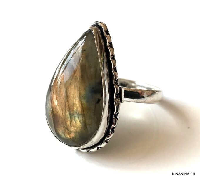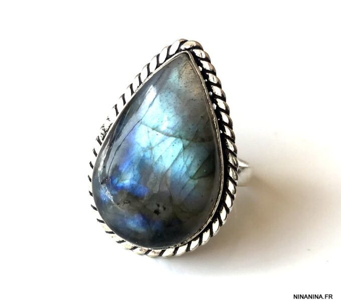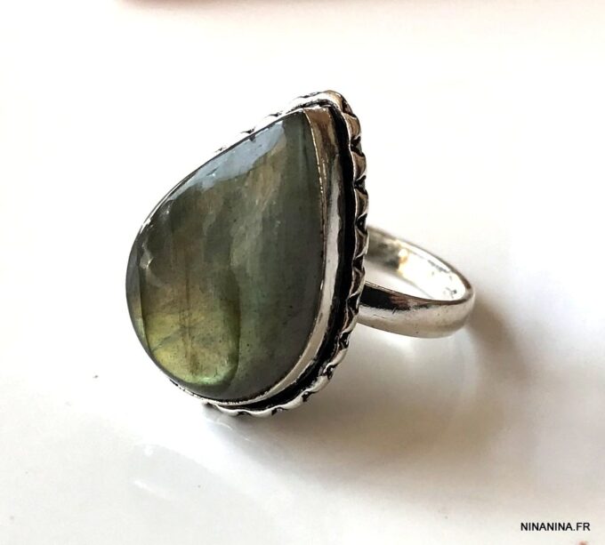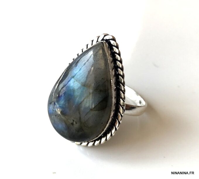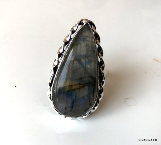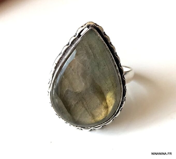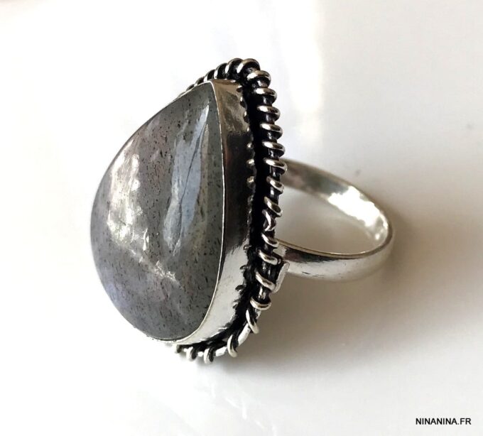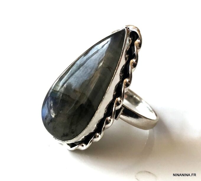 Vous allez craquer pour cette jolie Bague Labradorite femme grise véritable forme goutte composée d’un cabochon de forme goutte en labradorite naturelle monté sur un anneau en plaqué argent qui enlacera votre doigt avec force et délicatesse.