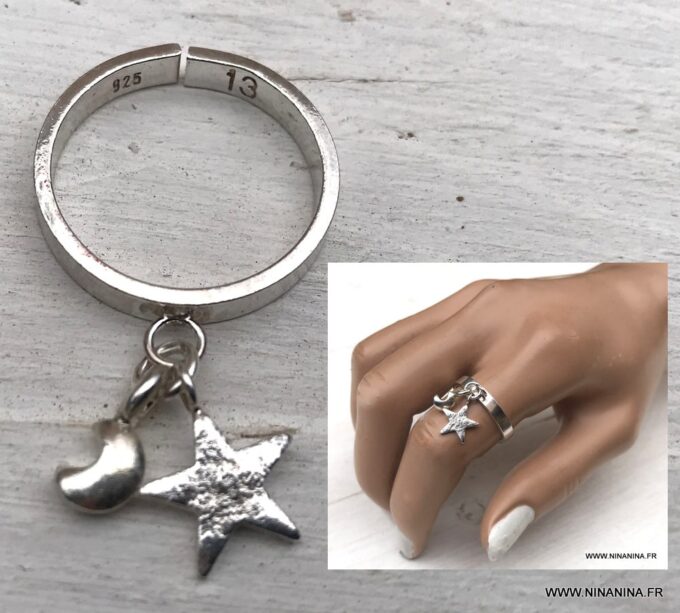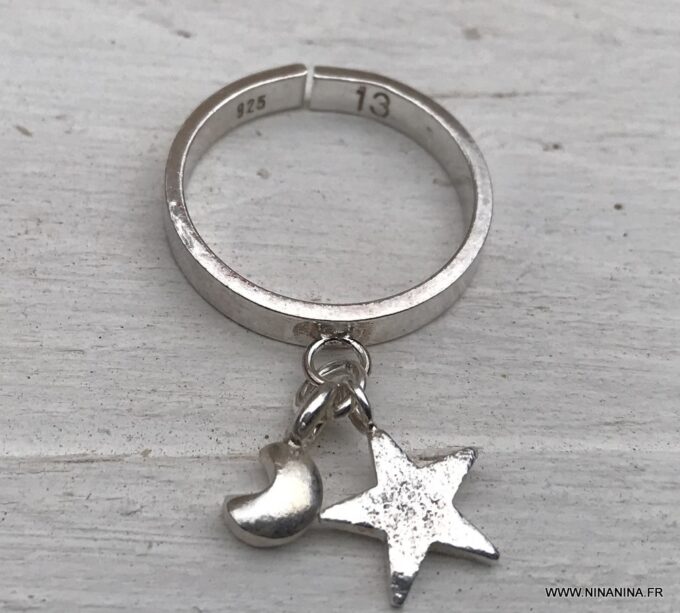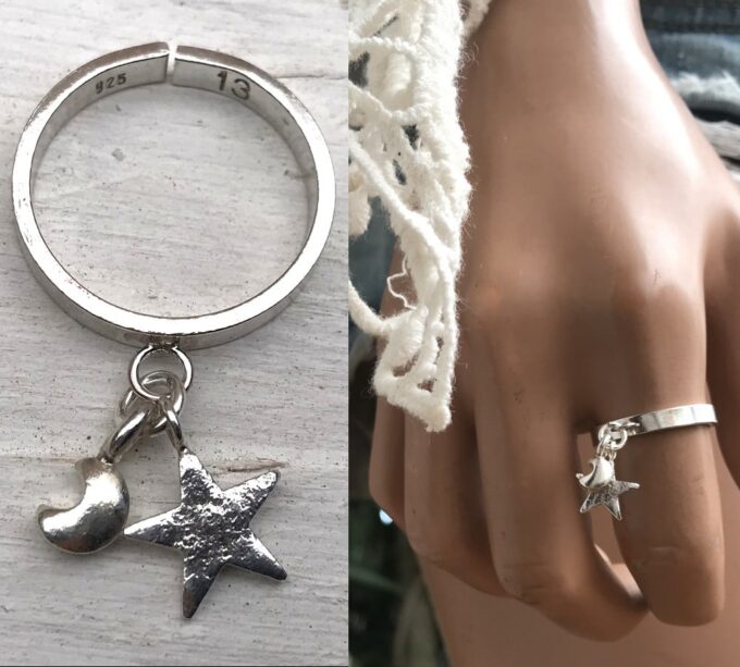 Cette jolie Bague lune etoile de haute qualité est unique et fabriquée à la main, de façon artisanale. Chaque pièce faite sur mesure.