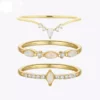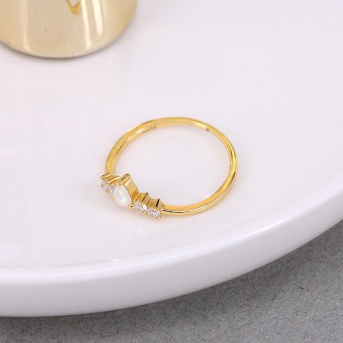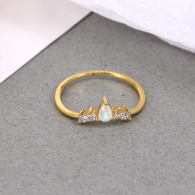 Une petite opale blanche naturelle en forme de goutte entourées de petits oxydes de zirconium, viennent se déposer sur un anneau fil plat en Argent 925 plaqué or.