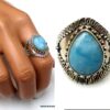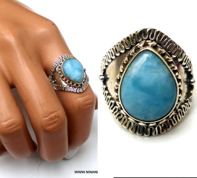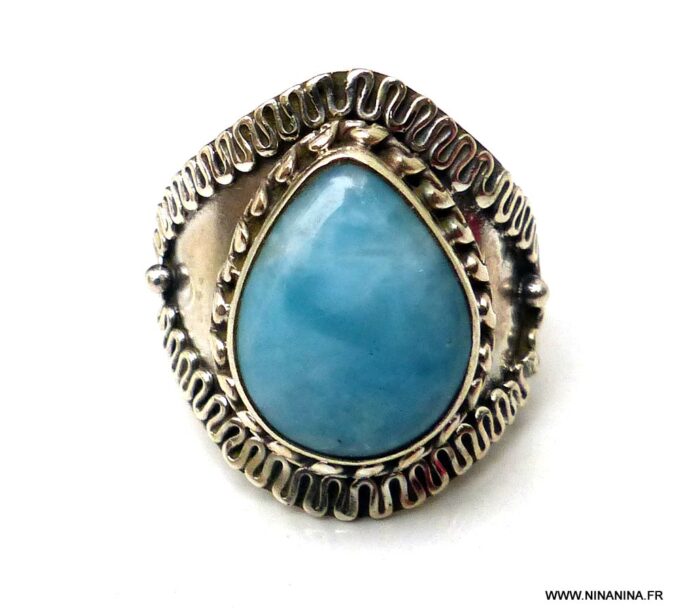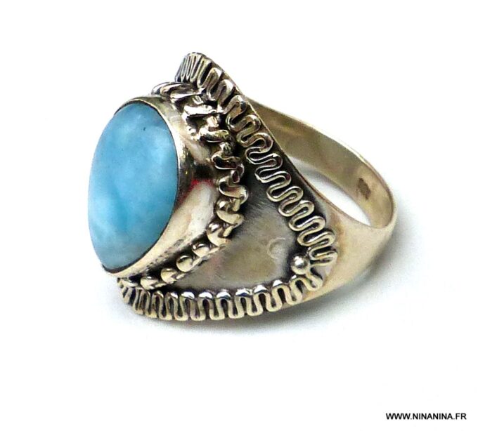 Bague Larimar Argent 925 pour femme composée d’un cabochon ovale en larimar naturelle monté sur un anneau en argent 925.