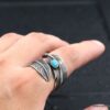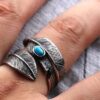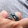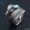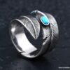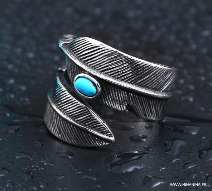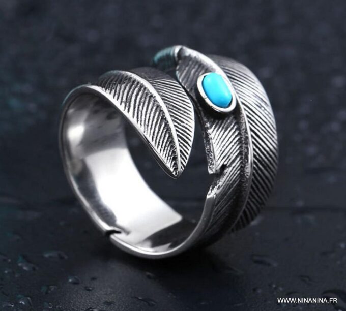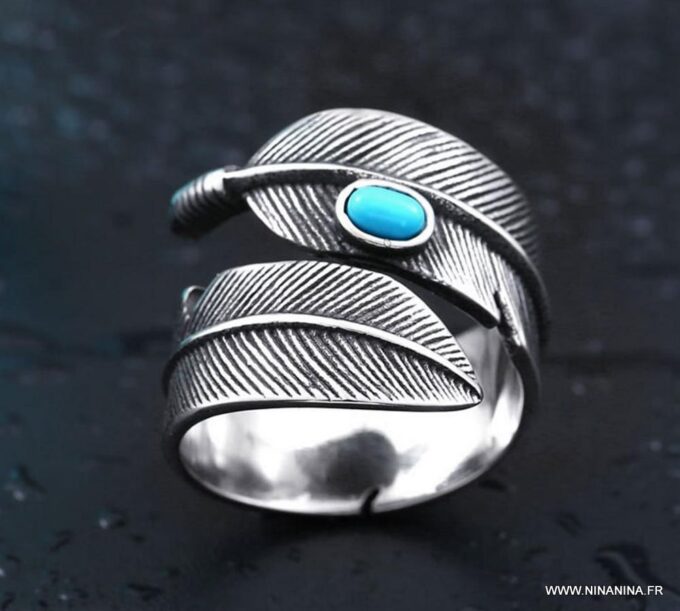 Pour les amoureux de Bijoux ethniques masculins et plus particulièrement de bijoux plume, pour ceux qui aiment soigner leur style et sortir des sentiers battus de la mode, cette Bague plume homme acier argent turquoise naturelle reglable va certainement vous faire tourner la tête!