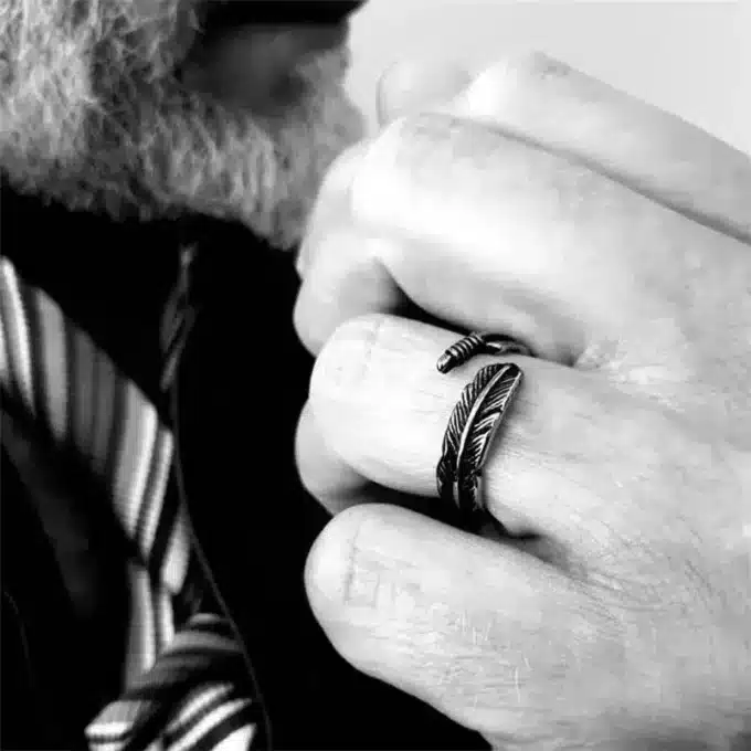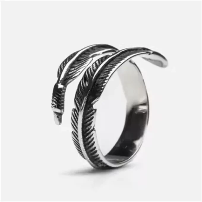 Pour les adeptes de Bijoux ethniques masculins et plus particulièrement de bijoux plume, pour ceux qui aiment soigner leur style et sortir des sentiers battus de la mode, cette Bague plume reglable homme femme acier inoxydable va certainement vous faire tourner la tête!