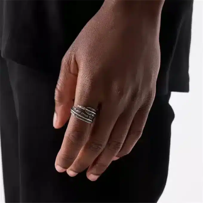 Cette bague homme plume fait preuve d’un style et d’un caractère qui ne laisseront aucun homme insensible! Elle s’adaptera à votre doigt grâce à sa taille réglable et accessoirisera tous vos looks d’une touche bohème chic.