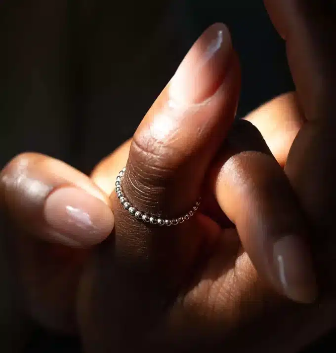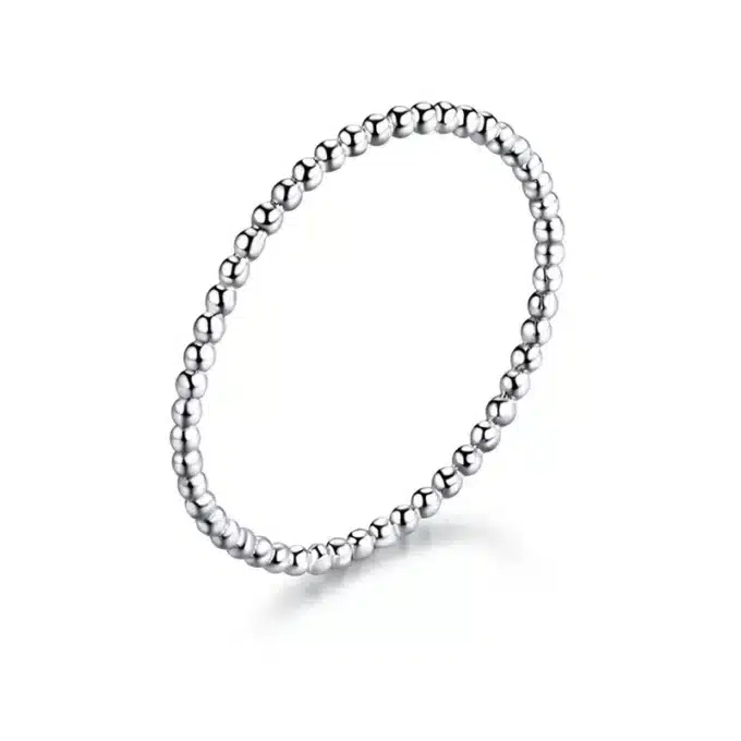 Cette Bague pouce femme perlée fine Argent massif 925 se glissera avec délicatesse sur le pouce ou l’autre doigt de votre choix! Mince, léger et super facile à porter, ce petit anneau féminin composé de perles de 2mm en Argent 925 saura révéler votre main toute entière.