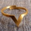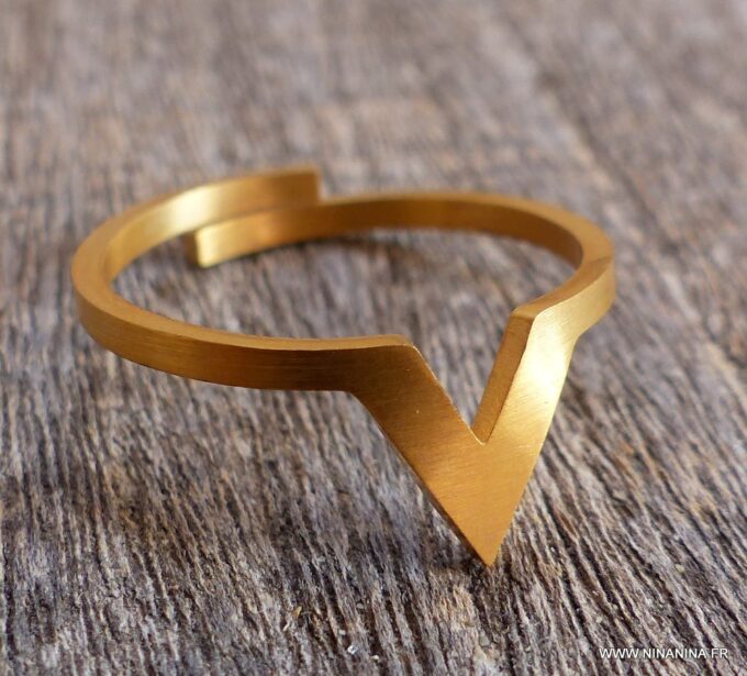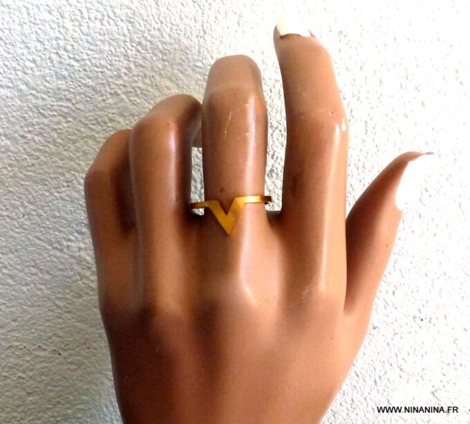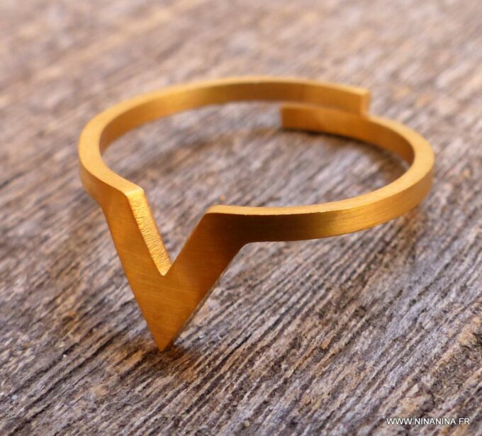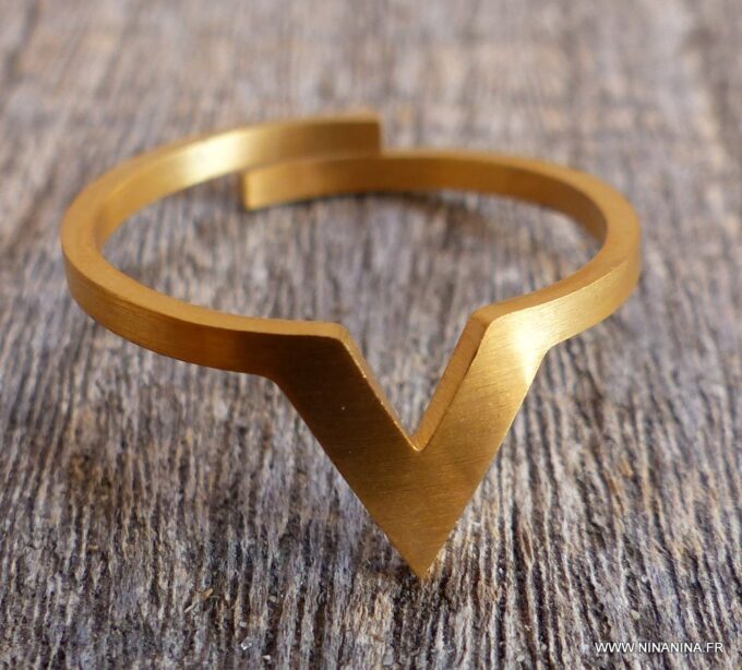 Simplicité et élégance ne font qu’un avec cette Bague Acier doré femme ajustable motif chevron à prix mini à porter sur le bout des doigts! Sur la dernière ou sur l’avant dernière phalange, voir en bague classique si vous avez les doigts tout fins, cette bague acier femme avec son motif chevron délicat vous aidera à composer votre propre style à tout petit prix!