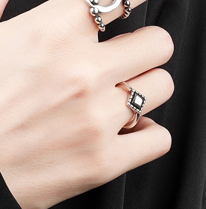 Avec cette bague losange argent ce n’est plus un problème ! Que ce soit pour vous ou parce que monsieur a décidé de faire sa demande, mieux vaut que vous connaissiez votre taille de bague. Dans le cas contraire, vous pourriez soit perdre votre bague, soit vous retrouver avec le doigt compressé. Avec cette Bague ajustable, vous n’avez pas à vous soucier de sa taille de doigt !