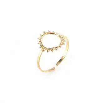 Cette jolie bague dorée accompagnera avec harmonie toutes vos tenues dans n’importe quelle occasion et offrira à votre main charme et originalité. A porter seule ou à mixer avec d’autres Bagues femme Ninanina.