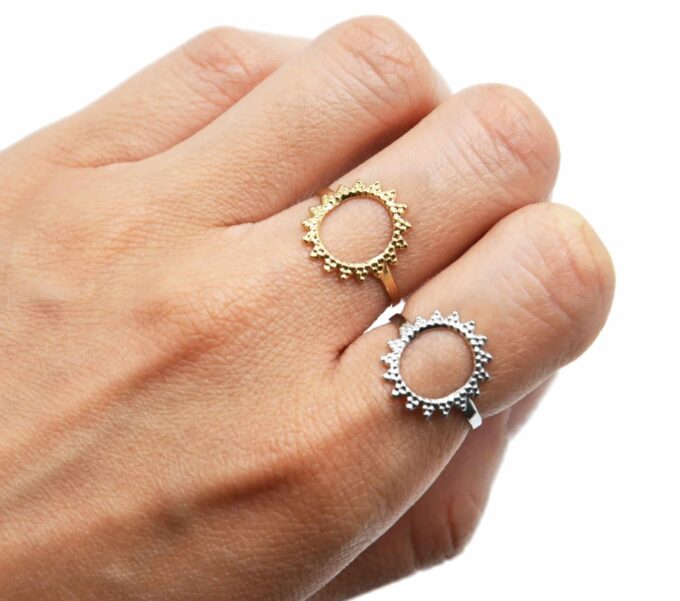 La bague soleil est réglable, ce qui signifie qu’elle s’adapte facilement à la taille de votre doigt. Que vous la portiez à votre annulaire, à votre majeur ou à tout autre doigt, cette bague s’ajustera parfaitement pour un confort optimal. Son design minimaliste et épuré en fait un choix polyvalent qui peut être porté au quotidien ou lors d’occasions spéciales.