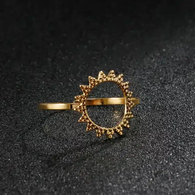 Soyez le premier à laisser votre avis sur “Bague Soleil Acier Femme inoxydable doré reglable”
