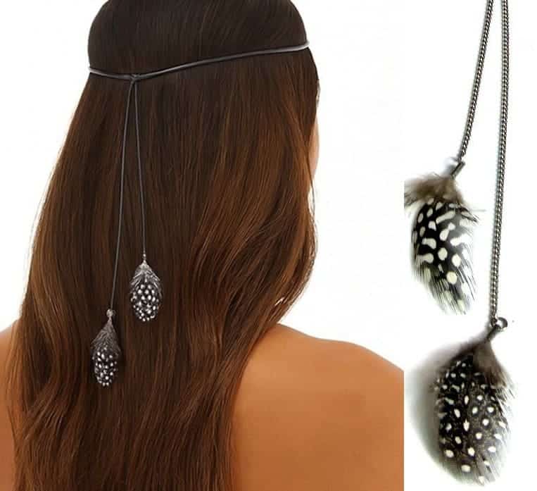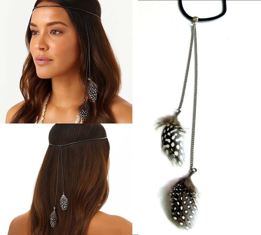 Ce bijou de cheveux se porte aussi bien sur le devant pour un style gypsy affirmé que sur le derrière de la tête pour un rendu plus ethnique chic. Il dispose en effet d’une perle coulissante permettant de disposer librement les plumes à l’endroit de votre choix.