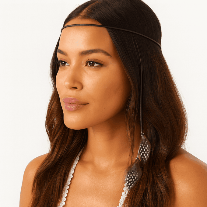 Serre-Tête Bohème Artisanal – Headband en Cordon de Cuir et Plumes Naturelles