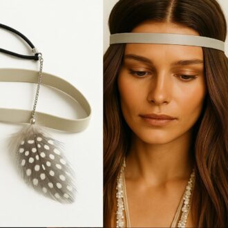 Le headband bohème chic en cordon cuir tressé et plumes naturelles est bien plus qu’un accessoire : c’est un symbole de liberté, d’élégance et de féminité.