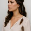 Ce head band bohème allie la simplicité du cuir tressé à la légèreté des plumes marron, créant un bijou de tête plein de charme et d’authenticité.