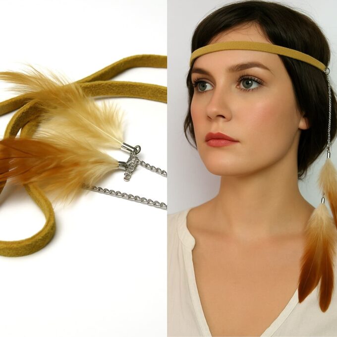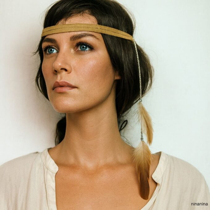 Le headband bohème chic en cordon cuir tressé et plumes naturelles est bien plus qu’un accessoire : c’est un symbole de liberté, d’élégance et de féminité.