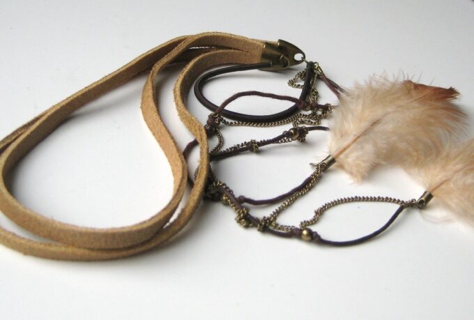 Bandeau de tete artisanal lacet Daim naturel fait main en france