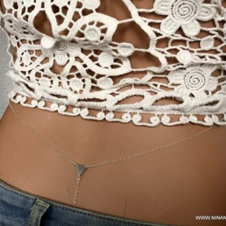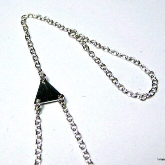 Bijou de pied argent 925 composé d’un connecteur triangulaire en argent 925 monté sur une chaînette en argent 925. Fermoir mousqueton et chainette de rallongement. Dim du connecteur : 1 X 1 x 1 cm. Taille unique ajustable. Longueur (fermoir compris) : 28,5 cm env. Livré dans sa pochette d’organza. Poids : 2,4 g