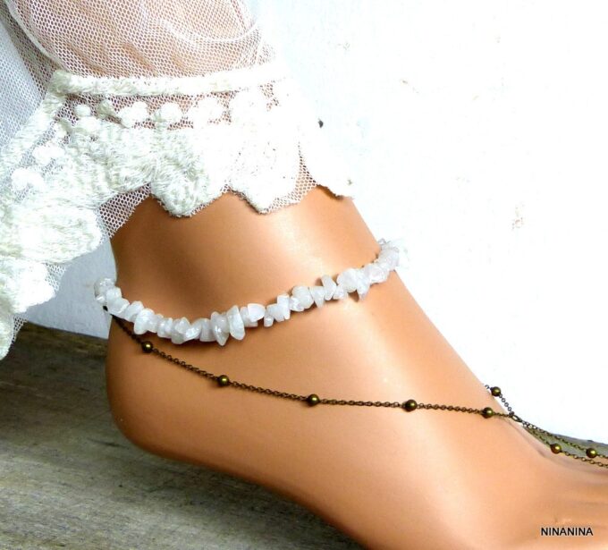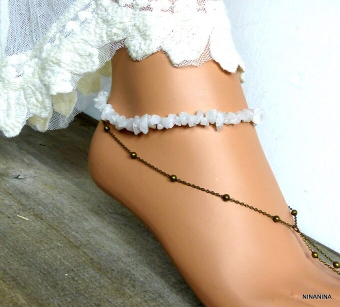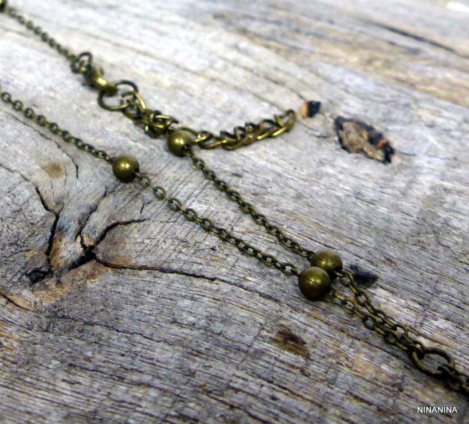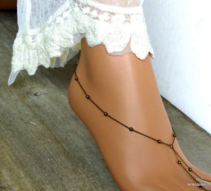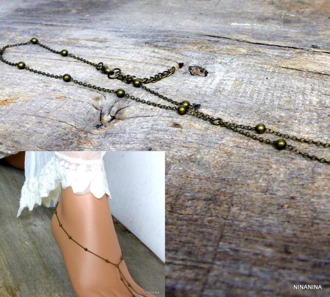 Bijou de pied métal bronze composé d’une chainette boule en métal bronze. Fermoir mousqueton et chainette de rallongement. Taille unique ajustable. Longueur (fermoir compris) : 28,5 cm env. Livré dans sa pochette d’organza. Bijou 100% fait-main