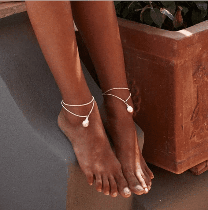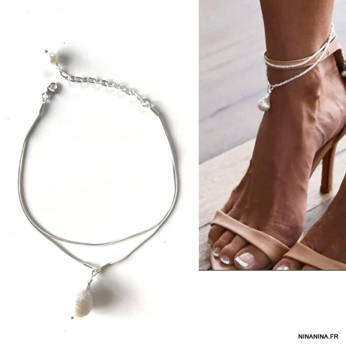 Soyez le premier à laisser votre avis sur “Bijou mariée bohème cheville perle baroque Argent”