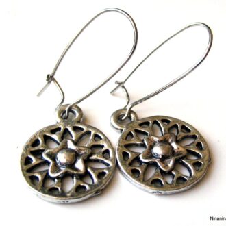 - Créoles argentées avec pendentifs : Optez pour ces créoles en acier argenté ornées de pendentifs délicats pour un look élégant et moderne.