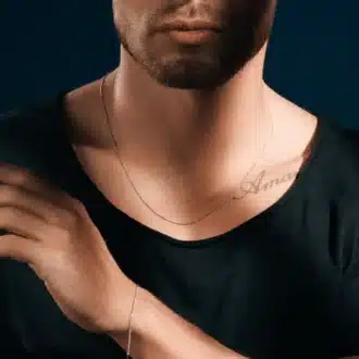 • Chaînes en argent avec pendentif : Crucifix, médailles, initiales ou symboles porte-bonheur, elles ajoutent une touche personnelle et symbolique.