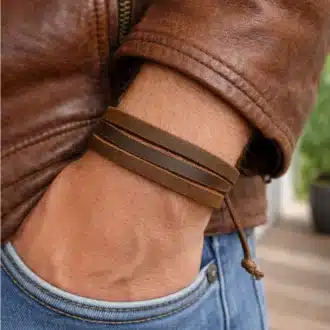 Bracelet cuir marron 3 rangs réglable par noeuds coulissants pour homme