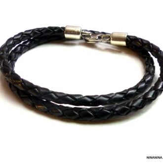 Bracelet cuir rouge tressé homme femme Acier inoxydable