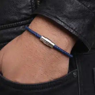Bracelet Cuir Bleu Homme Fait Main En France – Cordon Tressé Et Fermoir Magnétique Acier