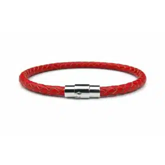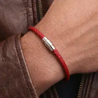 Bracelet Rouge Homme Cuir Tressé Artisanal – Fermoir Aimanté Acier inoxydable